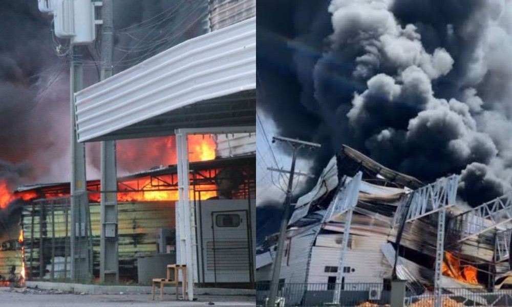 ”O fogo está controlado e confinado”, afirma Corpo de Bombeiros sobre incêndio nas fábricas Effa Motors e Valfilm da Amazônia em Manaus