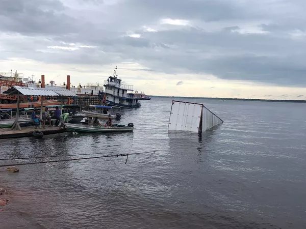 Caminhão perde controle e cai no Rio Negro com duas pessoas, em Manaus