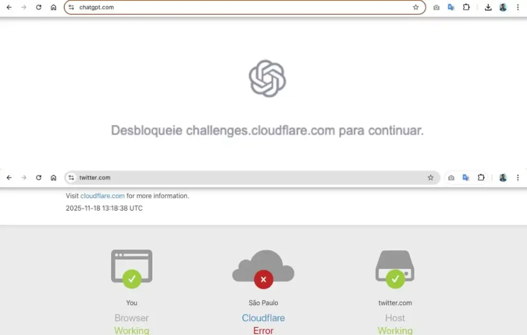 Plataforma Cloudflare fica fora do ar e derruba sites, X, ChatGPT, Canva e outros