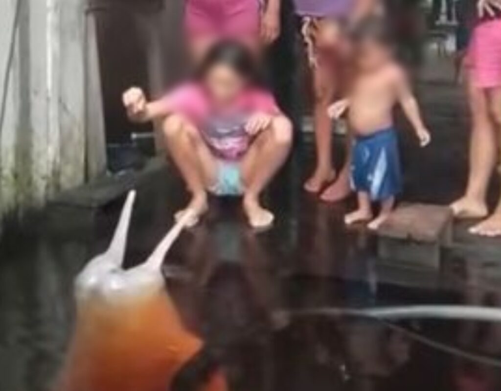 Boto surpreende moradores e brinca com crianças no interior do Amazonas; veja vídeo