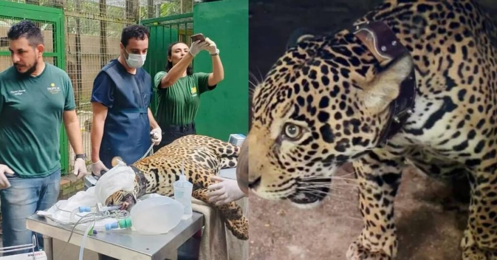 Onça-pintada resgatada atravessando o rio Negro recebe coleira de monitoramento e será solta em breve
