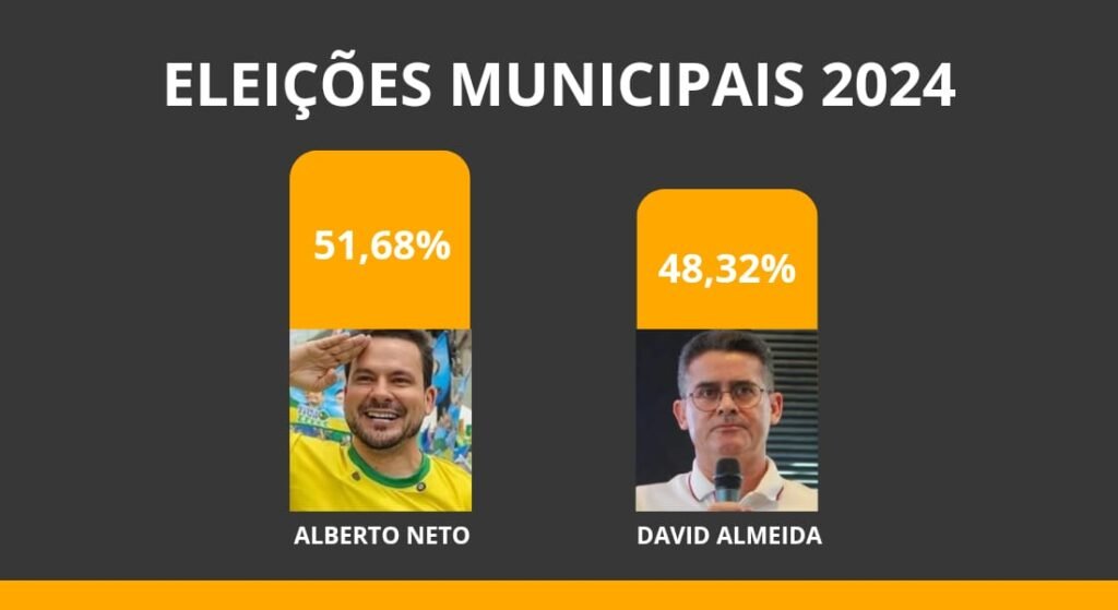 Eleições 2024: Alberto Neto tem 51,68% e David Almeida 48,32% de votos válidos no 2º turno, aponta pesquisa