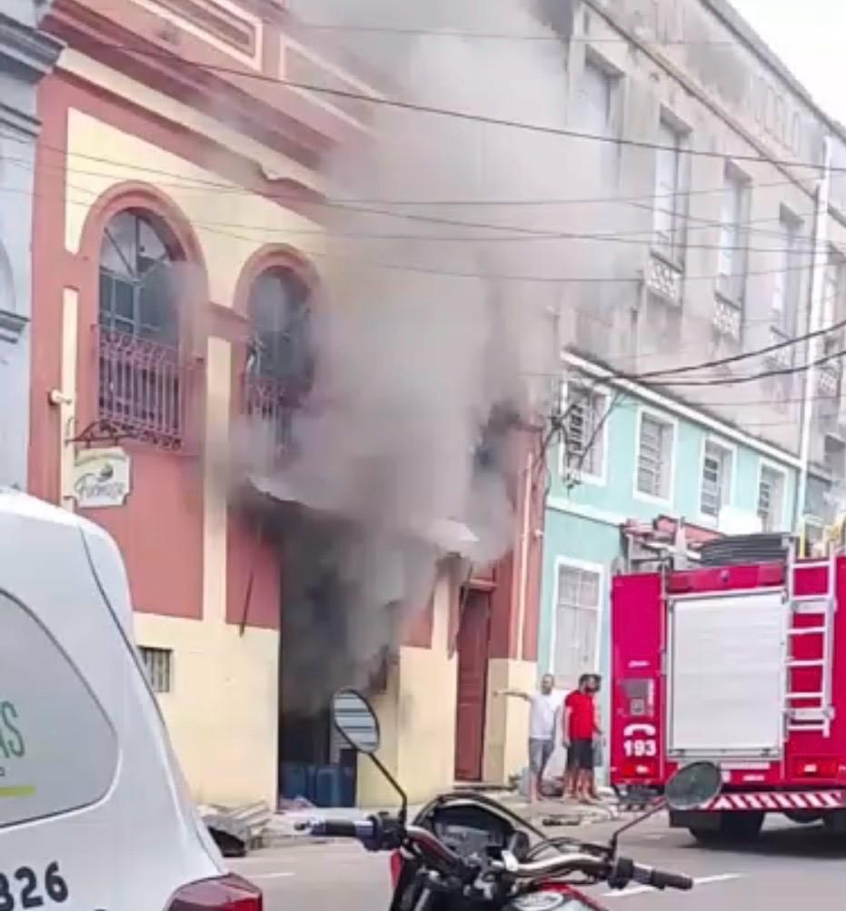 Estabelecimento comercial pega fogo no Centro de Manaus