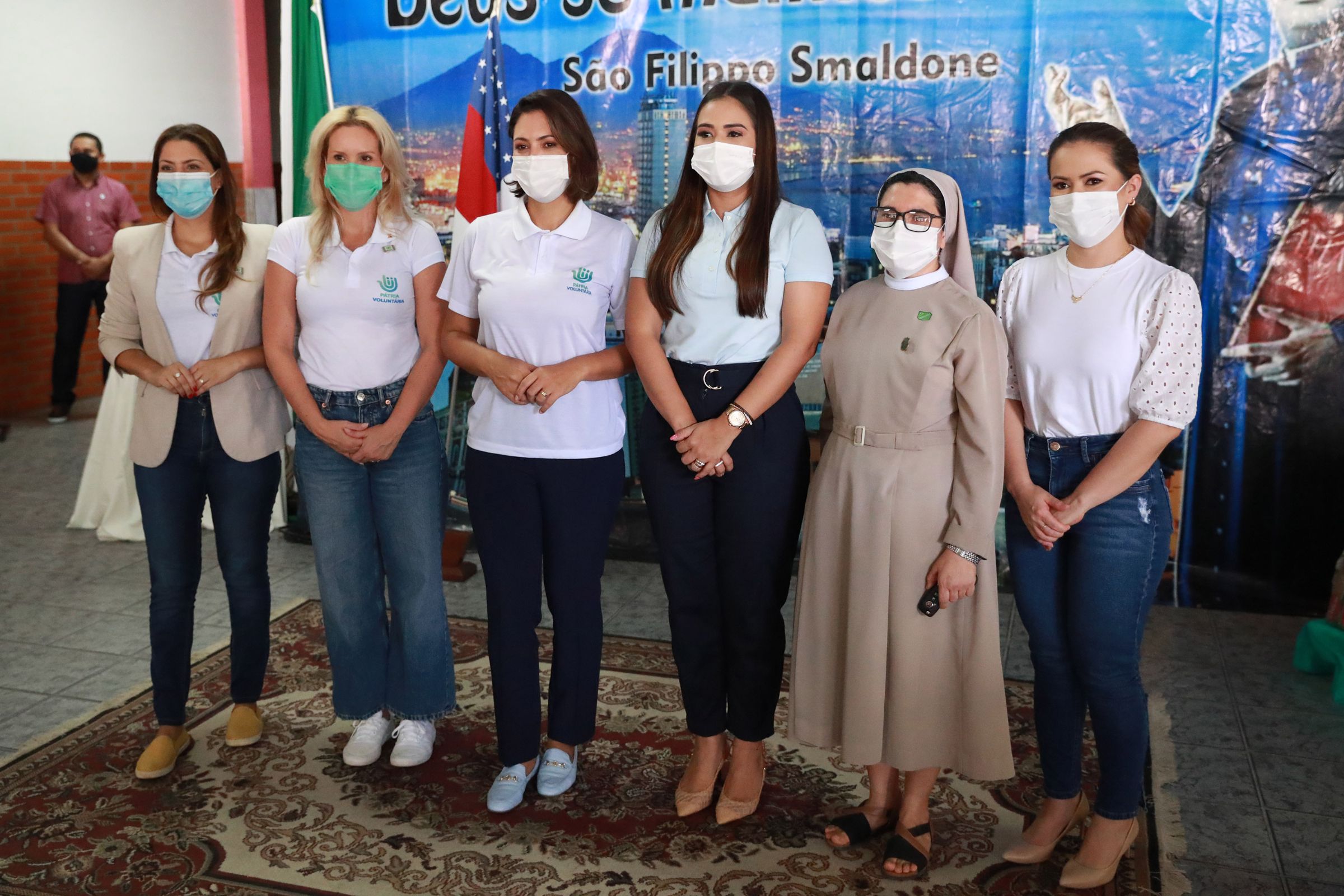 Ainda nesta manhã, a primeira-dama do Estado e a primeira-dama da República visitaram o Lar Batista Janell Doyle, instituição na zona leste de Manaus que abriga e assiste crianças, adolescentes e a comunidade local em situação de vulnerabilidade. Na ocasião, foram entregues mais de 150 cestas básicas do programa Pátria Voluntária.