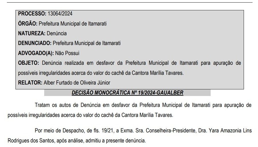 A suspensão ocorreu após o TCE-AM receber uma denúncia relacionada ao evento. A denúncia alegava que o município de Itamarati enfrentava precariedades em diversos setores, como saúde, educação e infraestrutura, tornando os gastos previstos para o evento excessivos para o orçamento municipal. Após análise das provas apresentadas, o tribunal determinou a suspensão do show e concedeu um prazo de 15 dias para que João Câmpelo apresente sua defesa.