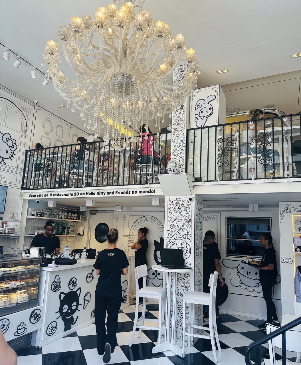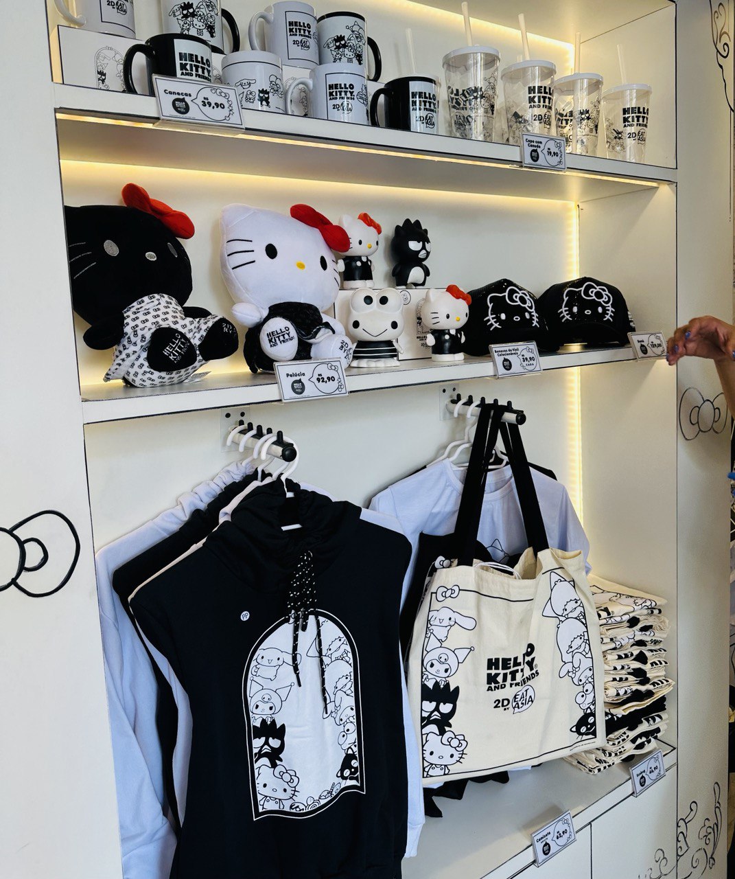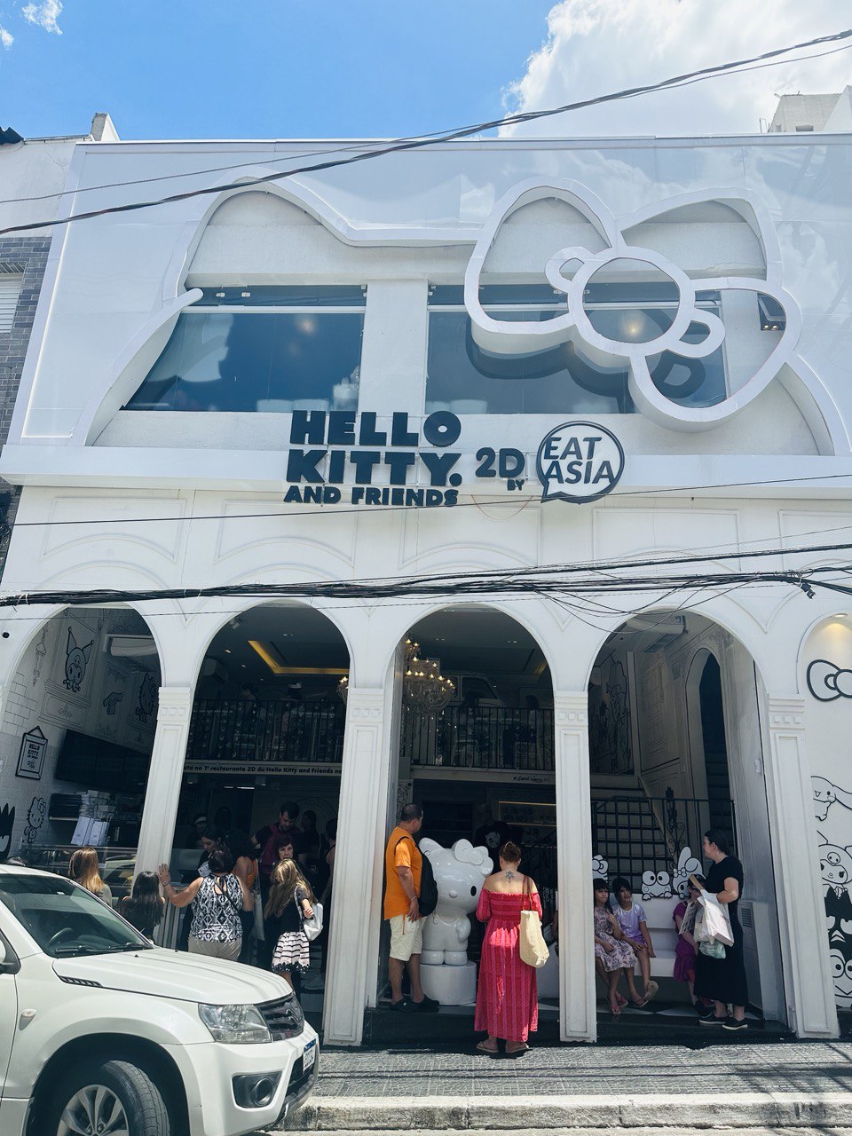 Depois fomos ao famoso e emblemático restaurante Hello Kitty and Friends, localizado no bairro Liberdade, que tem a temática 2D, com comida asiática e japonesa, além de vários espaços instagramáveis. Esperamos em torno de uma hora para almoçar no local, mas valeu a pena. A comida é deliciosa, há ainda várias opções de doces com os personagens e uma carta de drinks especiais sem álcool.