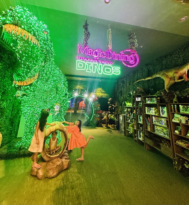 Alguns deles funcionam por períodos curtos, como o novo Magic Dining Dinos (@magicdining_ibira), no Shopping Ibirapuera. Antes dele, havia um restaurante temático que contava a história do Harry Potter. O local é lindo, com vários dinossauros realistas, comida deliciosa, servida no estilo de rodízio e ainda tem a apresentação de dinos, que aparecem circulando no restaurante e garantindo a diversão das crianças.
