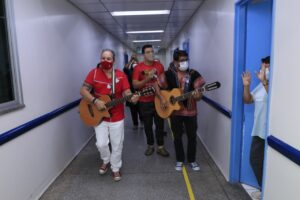 Além de Carlos Batata, as toadas foram entoadas pelos músicos Antonio Fonseca e Marcos Batata, que percorreram os corredores, enfermarias e salas de espera do Hospital Platão Araújo.
