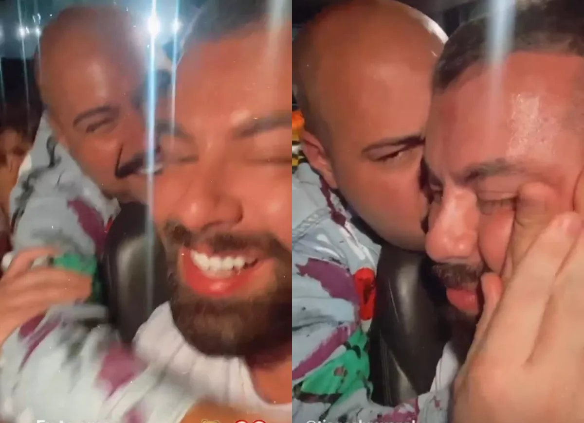 “Gente, olha quem está aqui comigo”, começou Poli. “Ai, eu cheguei, amooor”, respondeu Tiago. “Coiso mais lindo desse Brasil”, continuou elogiando o marido de Abravanel. “Ai meu Deus do Céu, eu não vou te largar nunca mais”, avisou o neto de Silvio Santos, enchendo o seu companheiro de beijos.