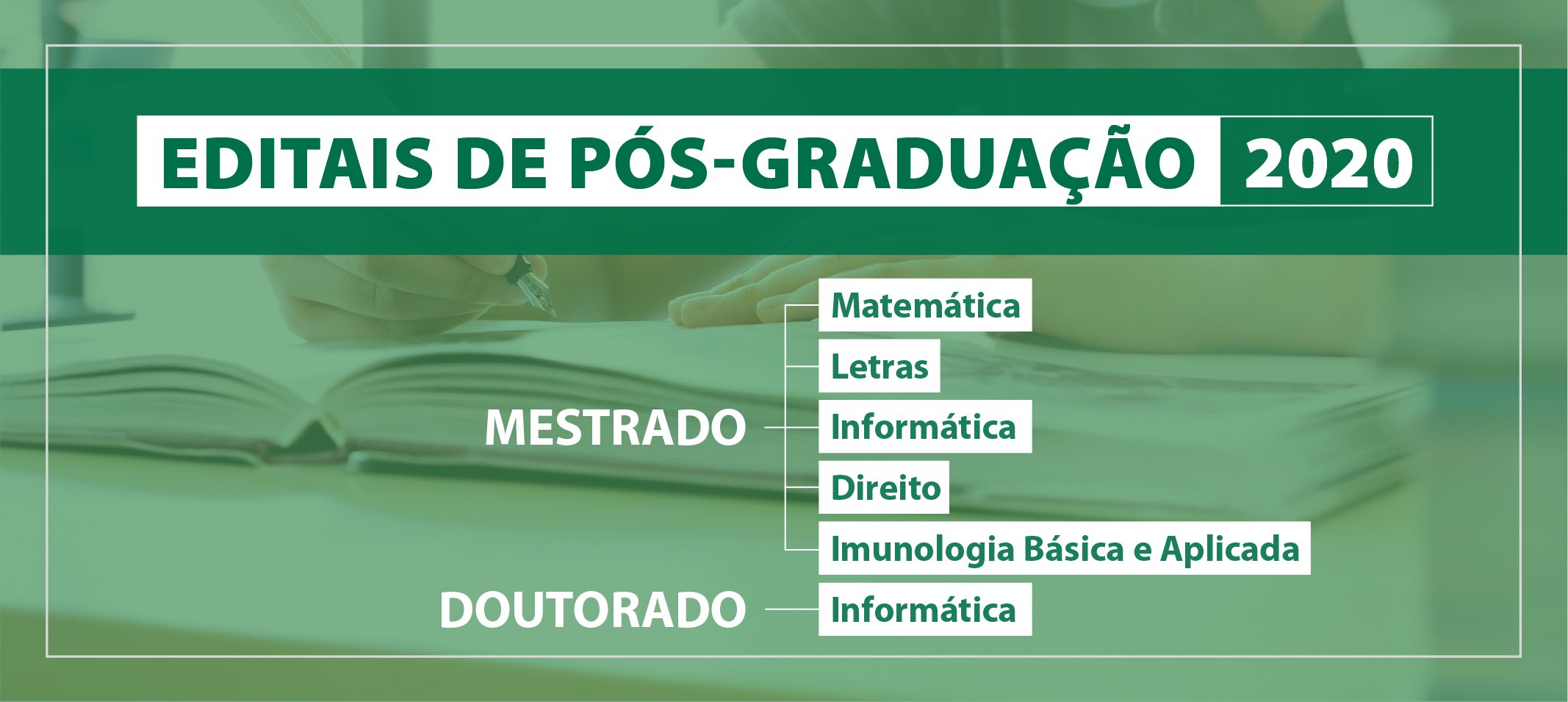 A Universidade Federal do Amazonas (Ufam), por meio da Pró-reitoria de Pesquisa e Pós-graduação (Propesp), informa que os Programas de pós-graduação (PPGs) em Matemática, Letras, Direito e Imunologia Básica e Aplicada estão com inscrições abertas ou com seleção prevista para os próximos meses para cursos de mestrado e doutorado (apenas Informática). O ingresso nos referidos cursos está previsto para o primeiro semestre letivo de 2021.