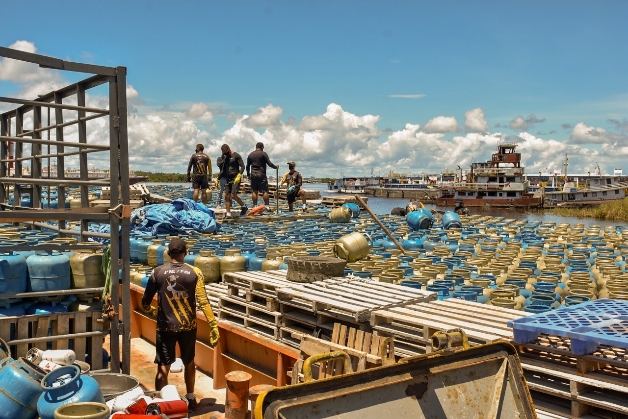 Após receberem denúncias informando que entorpecentes estavam sendo transportados dentro de botijas de gás, agentes da Secretaria de Segurança Pública (SSP-AM) realizaram a apreensão de uma tonelada de entorpecentes. A ação “Pronta-Resposta” ocorreu na tarde de quinta-feira (25/03), em um porto localizado no bairro Distrito Industrial, zona sul de Manaus. As drogas foram encontradas em botijas de gás, gerador de energia e tonéis de óleo, que estavam em uma balsa com destino à capital amazonense.