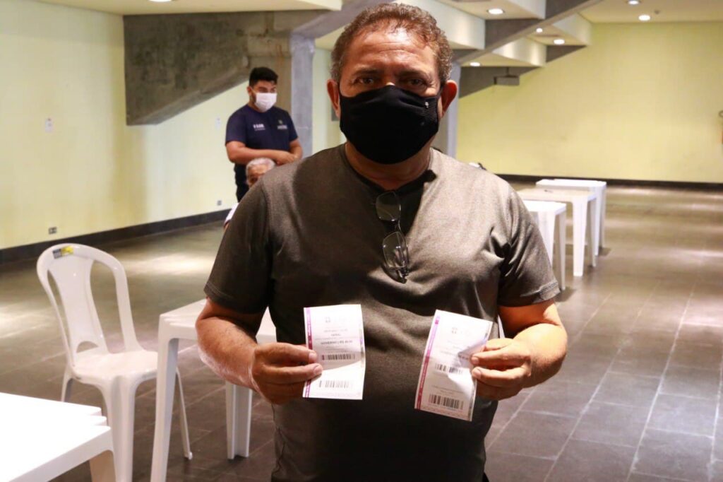 Quem também compareceu para pegar o par de ingressos foi José Antônio Ribeiro. Aos 64 anos, ele assistirá ao jogo da Seleção feminina com a filha e aprova a iniciativa do Governo de fazer os sorteios e ao mesmo tempo incentivar a vacinação contra Covid-19.