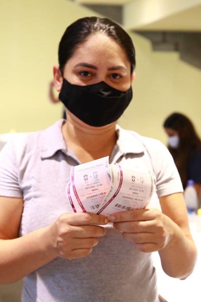 A campanha Vacina Premiada, realizada pelo Governo do Amazonas, iniciou, na manhã desta quinta-feira (25), a entrega de ingressos para as partidas do Torneio Internacional de Futebol Feminino aos sorteados na edição. A retirada dos bilhetes teve início às 10h e seguirá até as 16h, na Área VIP da Arena da Amazônia Vivaldo Lima, com acesso pela rua Flaviano Limongi, localizada entre o estádio e o Sambódromo.