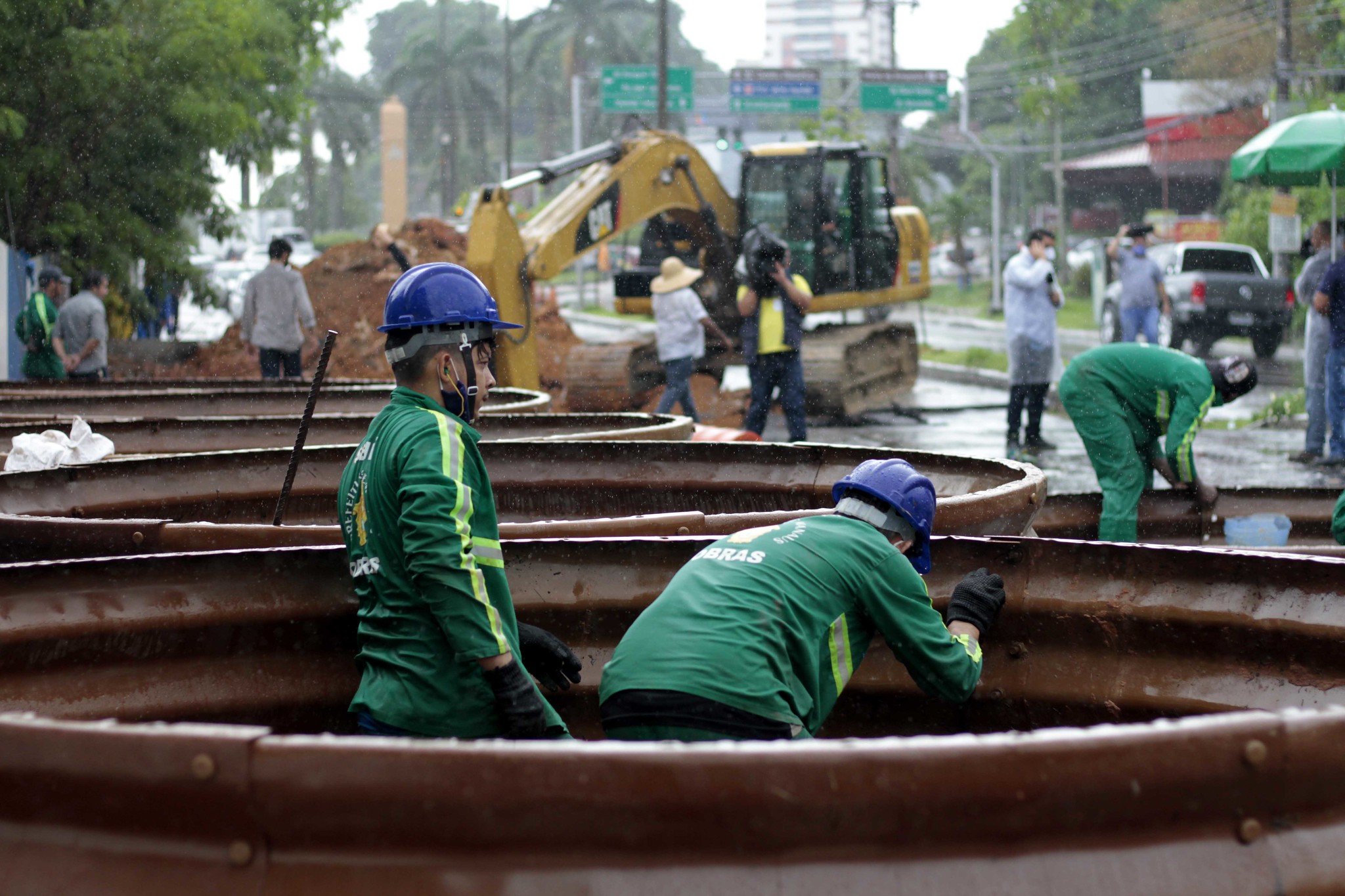 “Não vamos fazer remendos, mas dar soluções definitivas”, garantiu o prefeito de Manaus, Arthur Virgílio Neto, na manhã desta terça-feira, 24/11, ao vistoriar a obra emergencial de substituição da antiga rede de drenagem profunda, que cedeu nesta madrugada devido à forte chuva. Localizada na avenida Mário Ypiranga Monteiro, bairro Parque 10, zona Centro-Sul, a área já vinha recebendo reparos de forma subterrânea desde o início do mês de outubro.