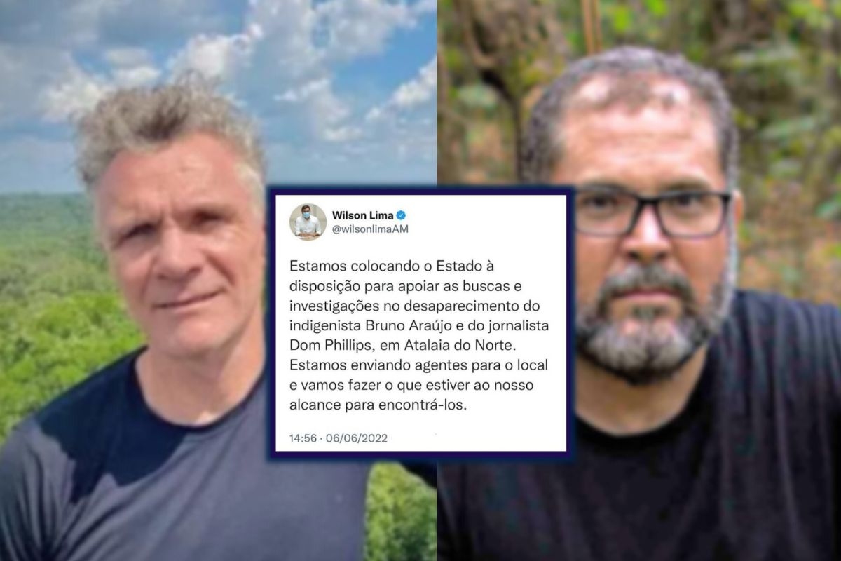 O governador do Amazonas, Wilson Lima, usou suas redes sociais nesta segunda-feira (06), para se pronunciar sobre o desaparecimento do indigenista Bruno Pereira, da Fundação Nacional do Índio (Funai ), e do jornalista inglês Dom Phillip, afirmando que colocará as forças policiais do estado à disposição para serem usadas nas buscas.