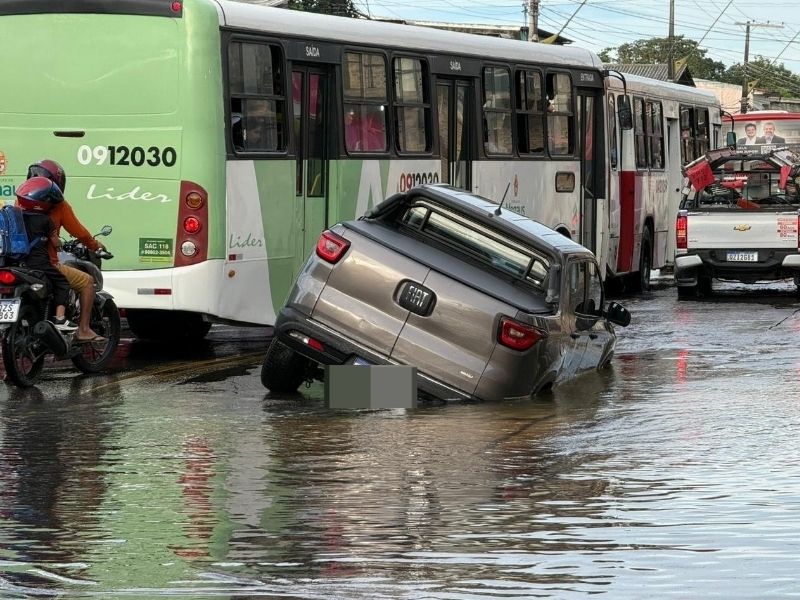 Um carro foi parcialmente engolido por um buraco que se abriu, na manhã desta sexta-feira, 24, na avenida Coronel Sávio Belota, antiga Ramos D, no bairro Novo Aleixo, zona Norte de Manaus. O caso ocorreu após um vazamento de água comprometer a via. Segundo moradores, o problema começou ainda nas primeiras horas do dia e evoluiu rapidamente, até abrir a cratera no meio da pista. O veículo passava pelo trecho, quando acabou caindo no buraco.