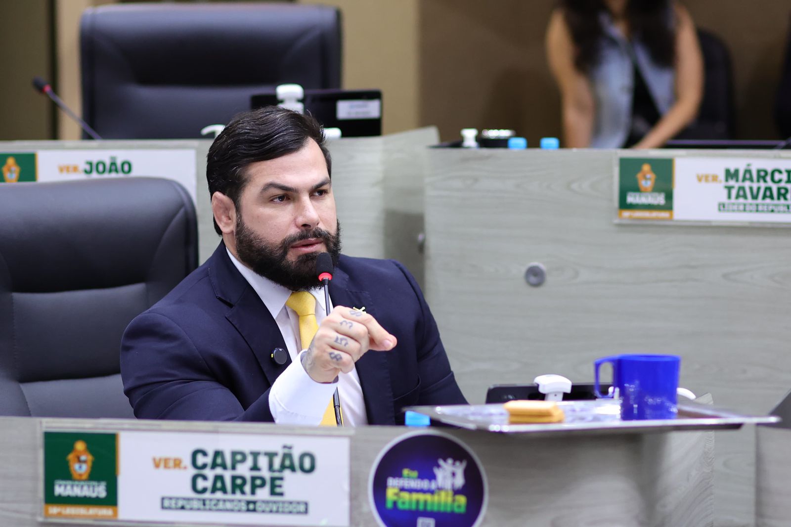 O vereador Capitão Carpê (PL) defendeu, nessa segunda-feira (27), melhorias na merenda escolar da rede municipal de educação. Durante a fala, o parlamentar fez uma dinâmica com bolacha e suco, itens da merenda escolar municipal alvos de críticas nos últimos dias. Segundo os cálculos de Carpê, uma merenda escolar composta por 5 bolachas e um suco de 200 ml custaria em torno de R$ 2,03 por aluno.
