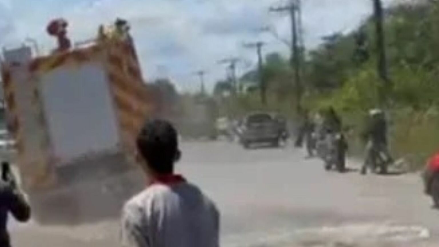 Uma viatura do Corpo de Bombeiros do Amazonas (CBMAM) quase tombou ao cair em um buraco, enquanto se dirigia para combater o incêndio em uma fábrica de veículos, na avenida Flamboyant, bairro Distrito Industrial II, zona Leste de Manaus. O momento foi registrado em vídeo.