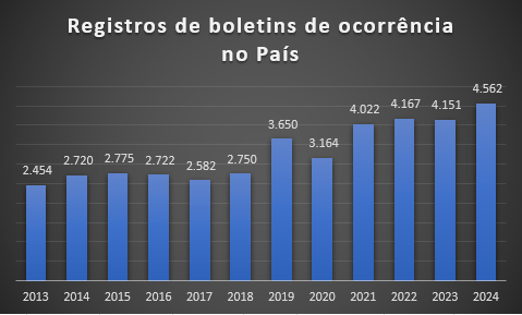 A conta é baseada na quantidade de boletins de ocorrência (BOs) registrados nas delegacias de Polícia Civil dos estados brasileiros e do Distrito Federal em 2024: 4.562. Ou seja, a cada duas horas, um médico passou por uma situação de ameaça, injúria, desacato, lesão corporal, difamação, furto, entre outros crimes, dentro de unidades de saúde, hospitais, consultórios, clínicas, prontos-socorros, laboratórios e outros espaços semelhantes, públicos ou privados. É a maior quantidade da série histórica pesquisada pelo CFM.