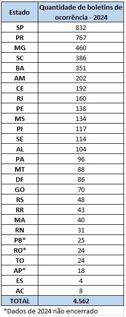 Apenas os estados Amapá, Paraíba e Rondônia não encaminharam informações relativas ao ano de 2024. Já em relação ao Rio de Janeiro, por exemplo, que concentra o terceiro maior número de médicos do País, o levantamento considera apenas os registros de boletim de ocorrência em que o médico é identificado como vítima de violência em estabelecimento de saúde (foram desconsiderados milhares de casos de violência em estabelecimentos de saúde em que a profissão da vítima não foi preenchida no boletim de ocorrência). Mato Grosso informou dados referentes à violência em hospitais e clínicas médicas contra qualquer profissão – a partir daí o CFM fez uma estimativa de um caso para 10 casos envolvendo só médicos.