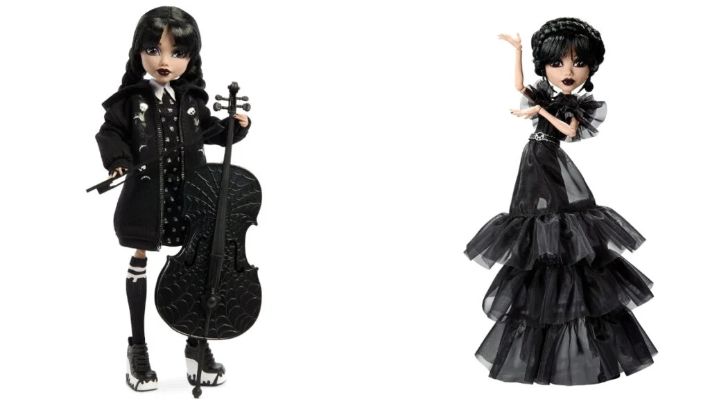Além disso, outra opção traz a personagem usando o icônico vestido preto com saia de babados, remetendo à famosa cena da dança no baile da escola. As imagens das bonecas já geram grande expectativa entre os fãs.