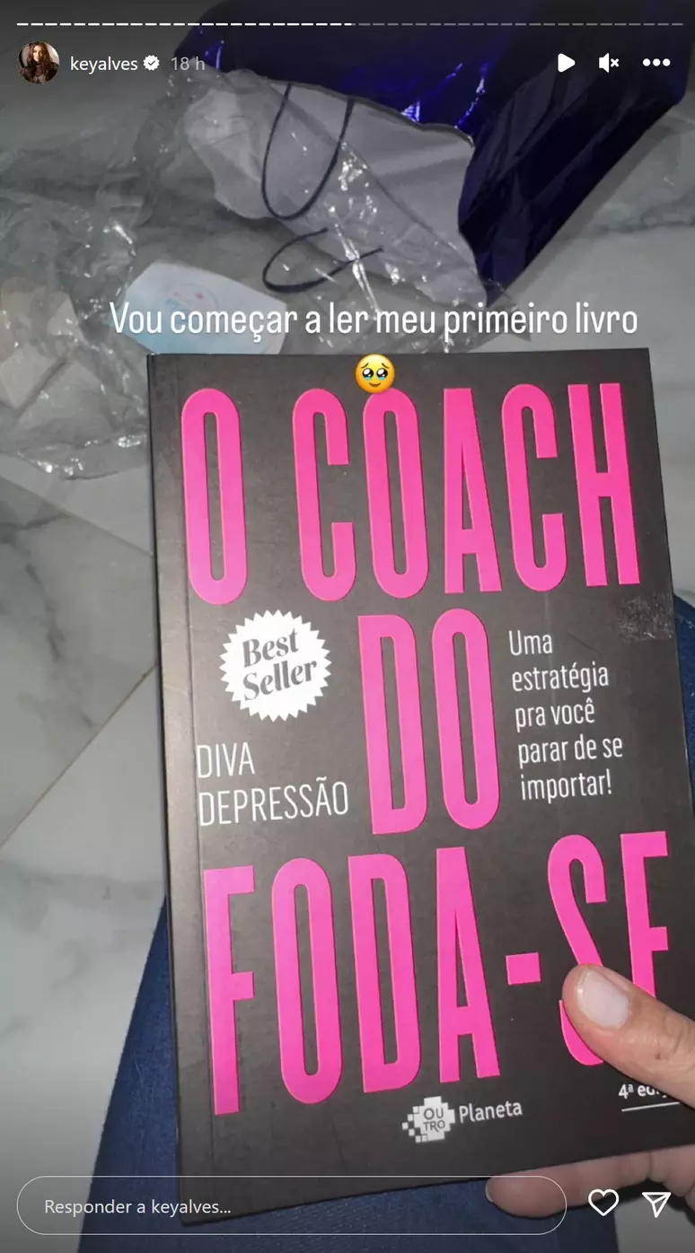 Em seus stories no Instagram, a jogadora de voleibol apresentou o livro escolhido para começar os estudos, “O Coach do F*** – Uma estratégia para você parar de se importar”, dos autores Filipe Oliveira e Eduardo Camargo.