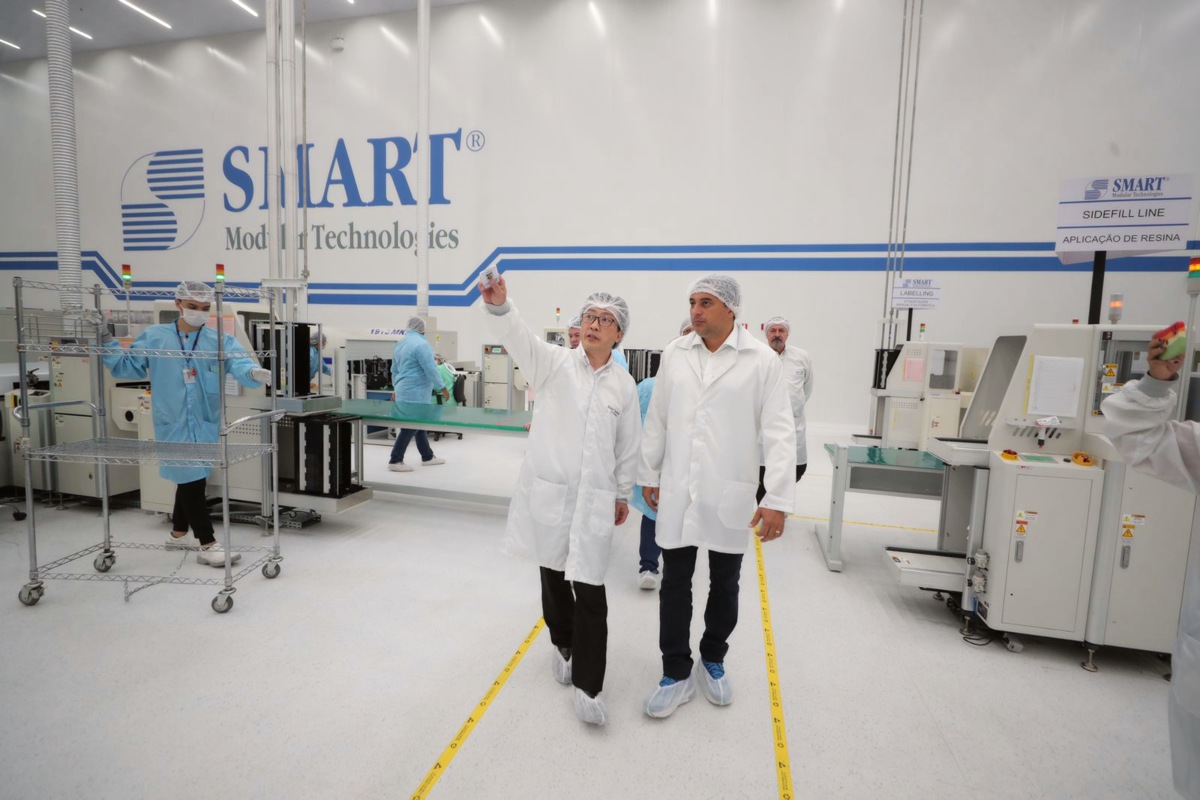 A Smart Modular Technologies da Amazônia, inaugurada em março deste ano, opera com cerca de 160 funcionários em três turnos e deve faturar R$ 1,5 bilhão até dezembro. O governador reforçou o desejo e a preocupação em proporcionar condições para que a empresa amplie seus investimentos no Amazonas, gerando novos postos de trabalho.