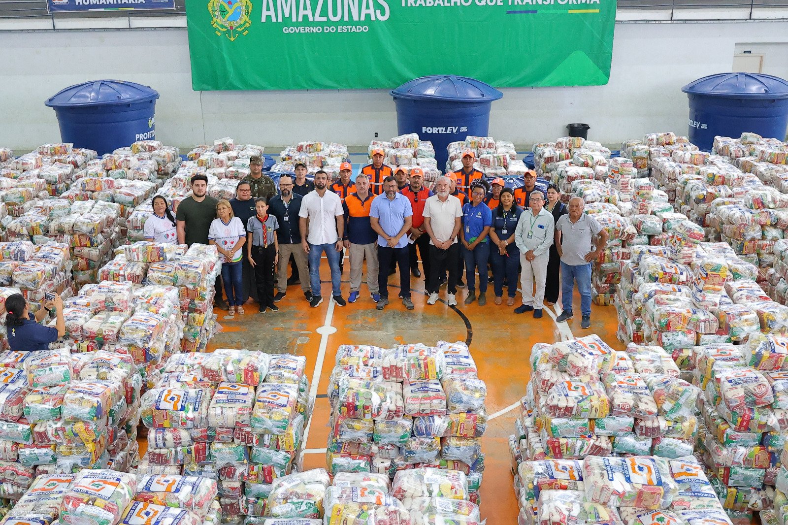 Ao todo, 7 mil cestas básicas foram entregues no Centro Educacional de Tempo Integral (Ceti) João Carlos Pereira dos Santos, em Tabatinga (a 1.108 quilômetros de Manaus). A ajuda humanitária será dividida para outros municípios da calha, como Benjamin Constant e Atalaia do Norte (a 1.121 e 1.138 quilômetros de Manaus, respectivamente).